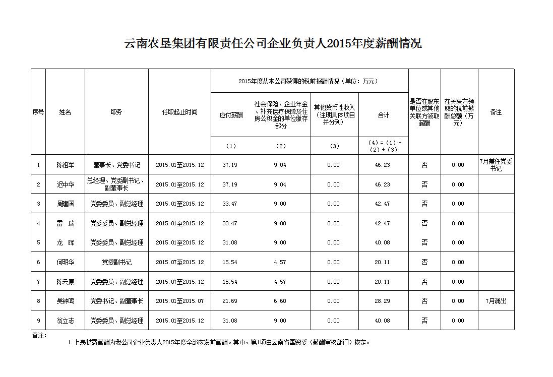 乐动官方注册企业负责人2015年度薪酬情况